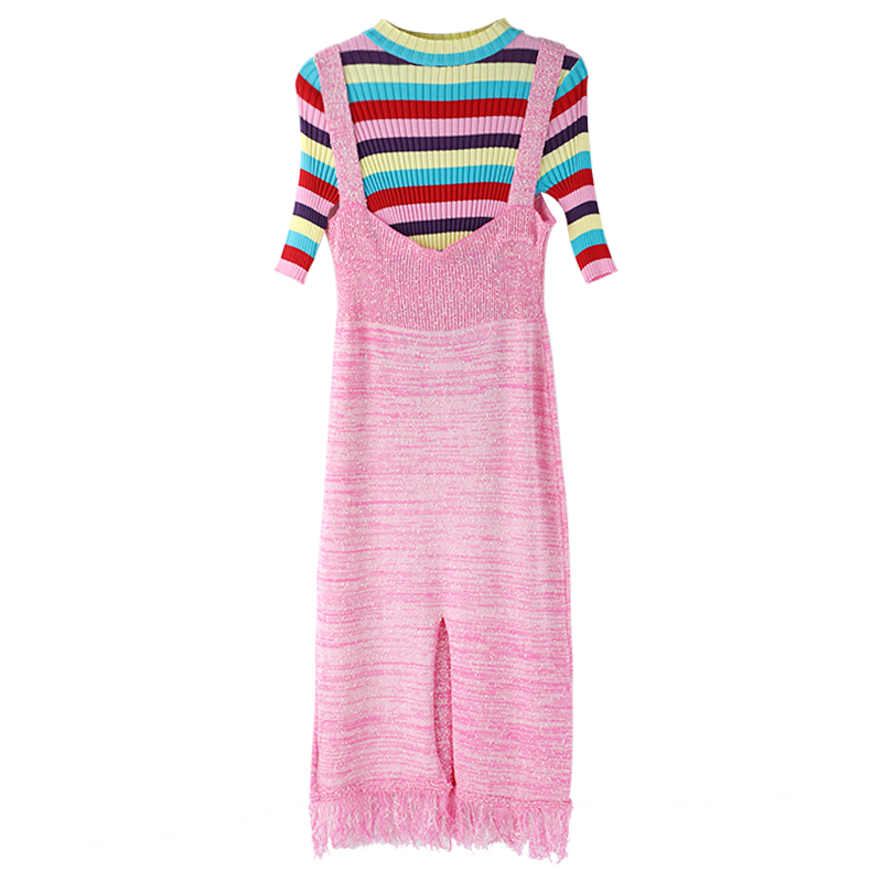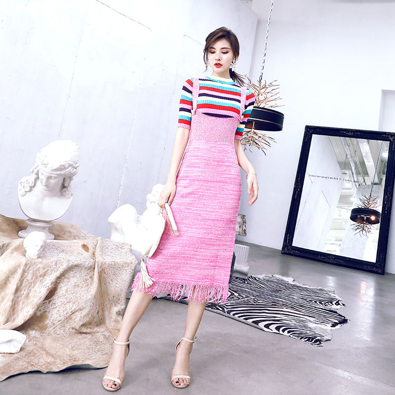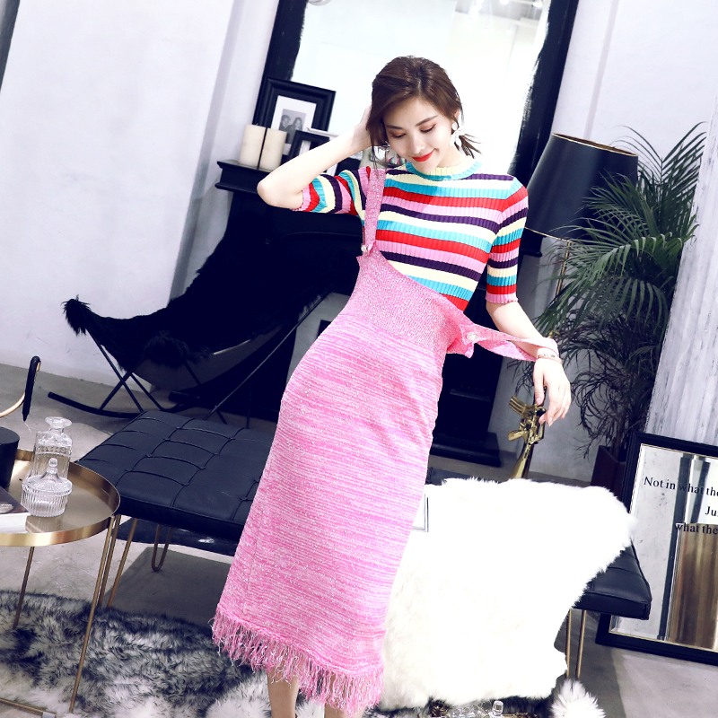 S秀時尚背帶裙條紋兩件套裝裙2018夏季新款女裝吊帶連衣裙小清新