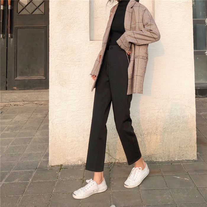 / 褲子女2018新款韓范學生復古chic顯瘦高腰九分褲小腳休閑哈倫褲潮