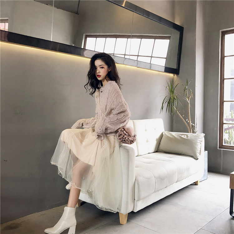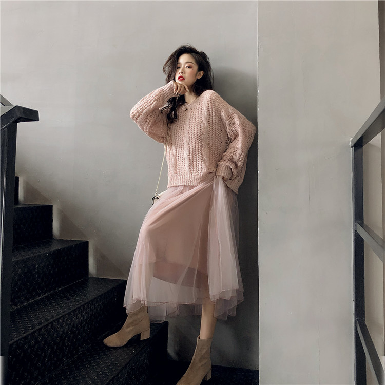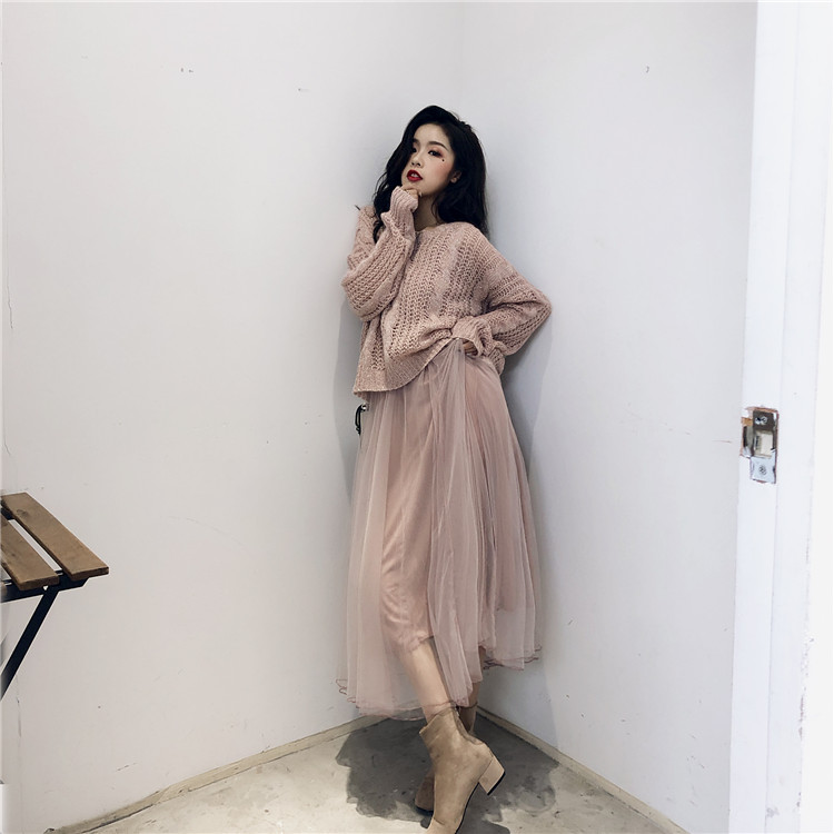 粉色毛衣|杏色毛衣|粉色連衣紗裙|杏色衣紗裙