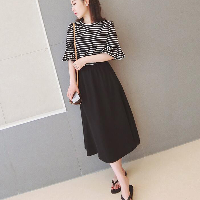 / 長裙夏季2017新款女潮學生韓版腿粗的女生田園小清新黑色顯瘦裙子