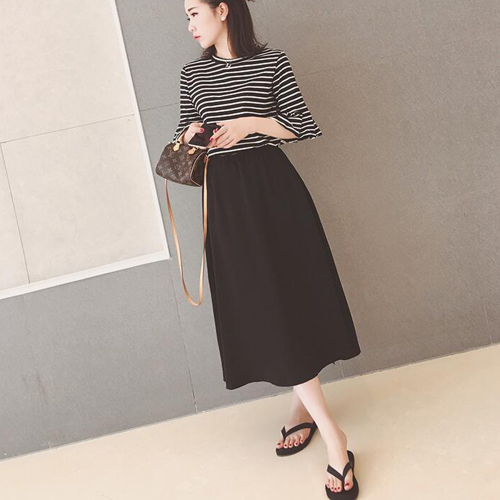 長裙夏季2017新款女潮學生韓版腿粗的女生田園小清新黑色顯瘦裙子