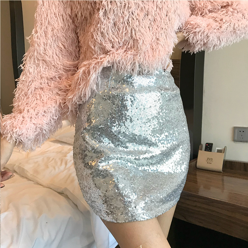 / 港風新款時尚套裝長袖流蘇邊圓領毛衣高腰亮片包臀短裙chic兩件套