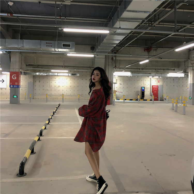 / 中長款格子防曬薄寬松港風長袖襯衣2018新款時尚秋季韓版chic開衫