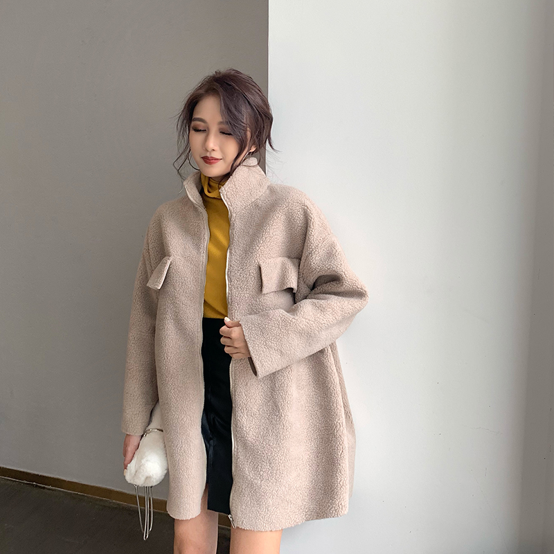 新款韓版百搭中長款寬松加厚開衫長袖復古chic氣質秋冬拉鏈外套潮