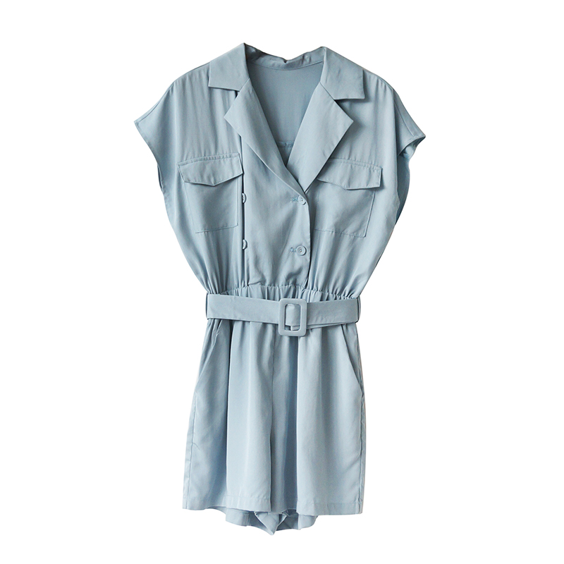 S秀復古純色連衣褲女夏2018新款V領闊腿短褲時尚休閑寬松連衣褲子
