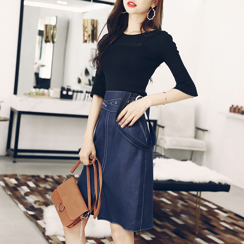 / 名媛氣質2018秋季新款時尚兩件針織上衣打底衫吊帶半身裙甜美套裝