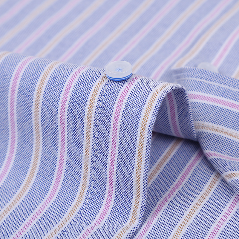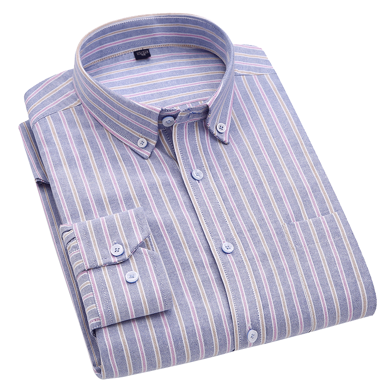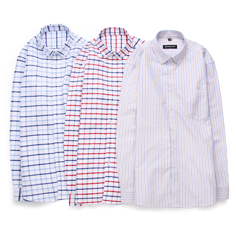 / 春款全棉牛津紡扣領男士襯衫商務休閑條紋長袖碎花純棉修身襯衣潮