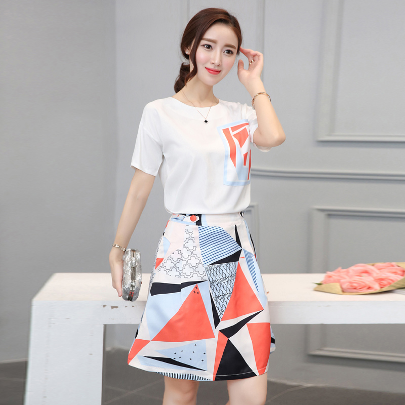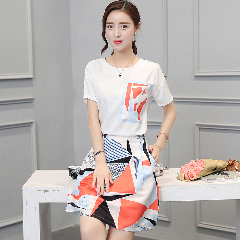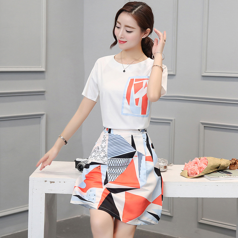 / 夏季新款韓版女裝雪紡兩件套圓領短袖套裝裙中長款時尚連衣裙