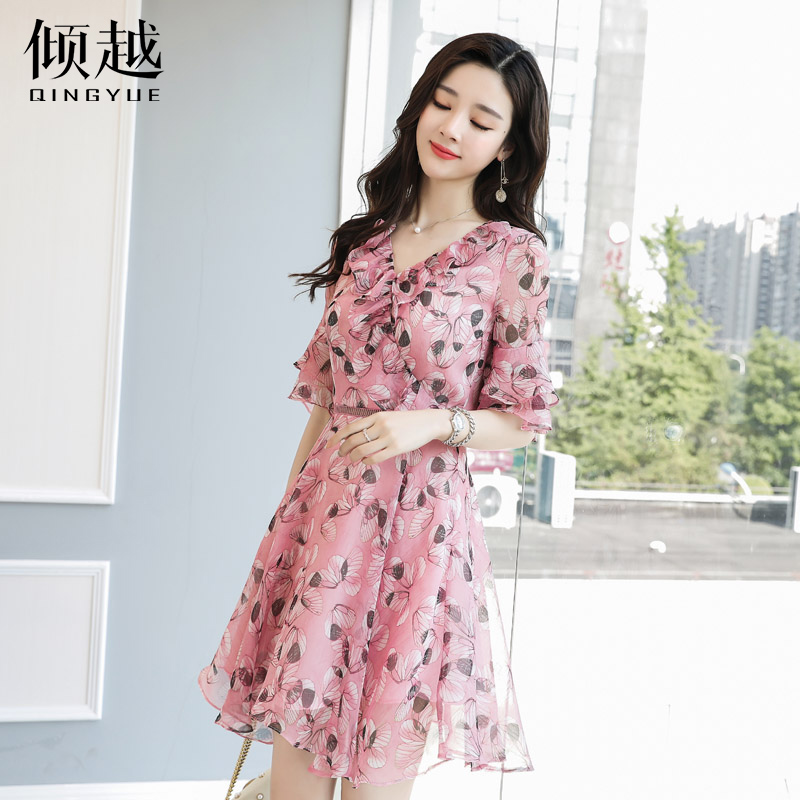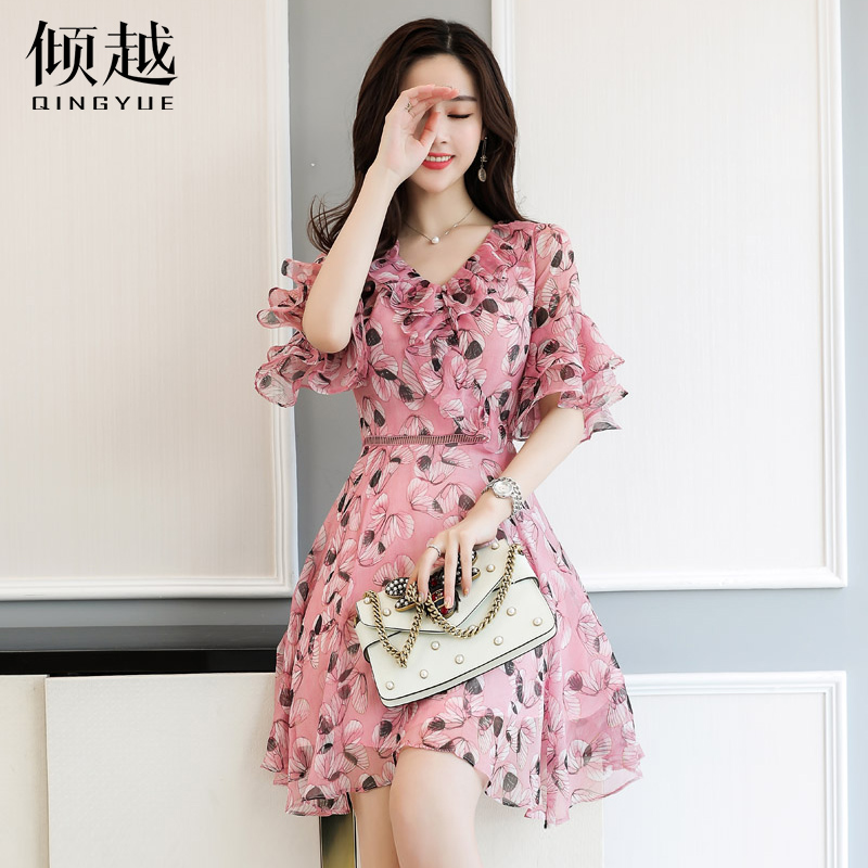 碎花荷葉邊連衣裙2017新款韓版顯瘦中長款飄逸雪紡沙灘裙子仙女夏