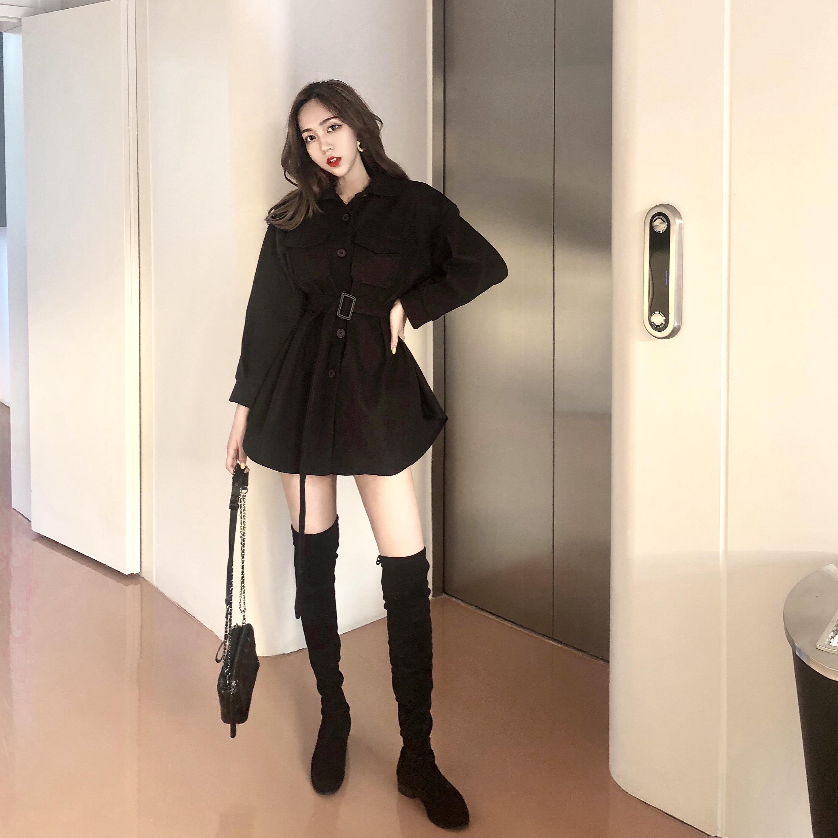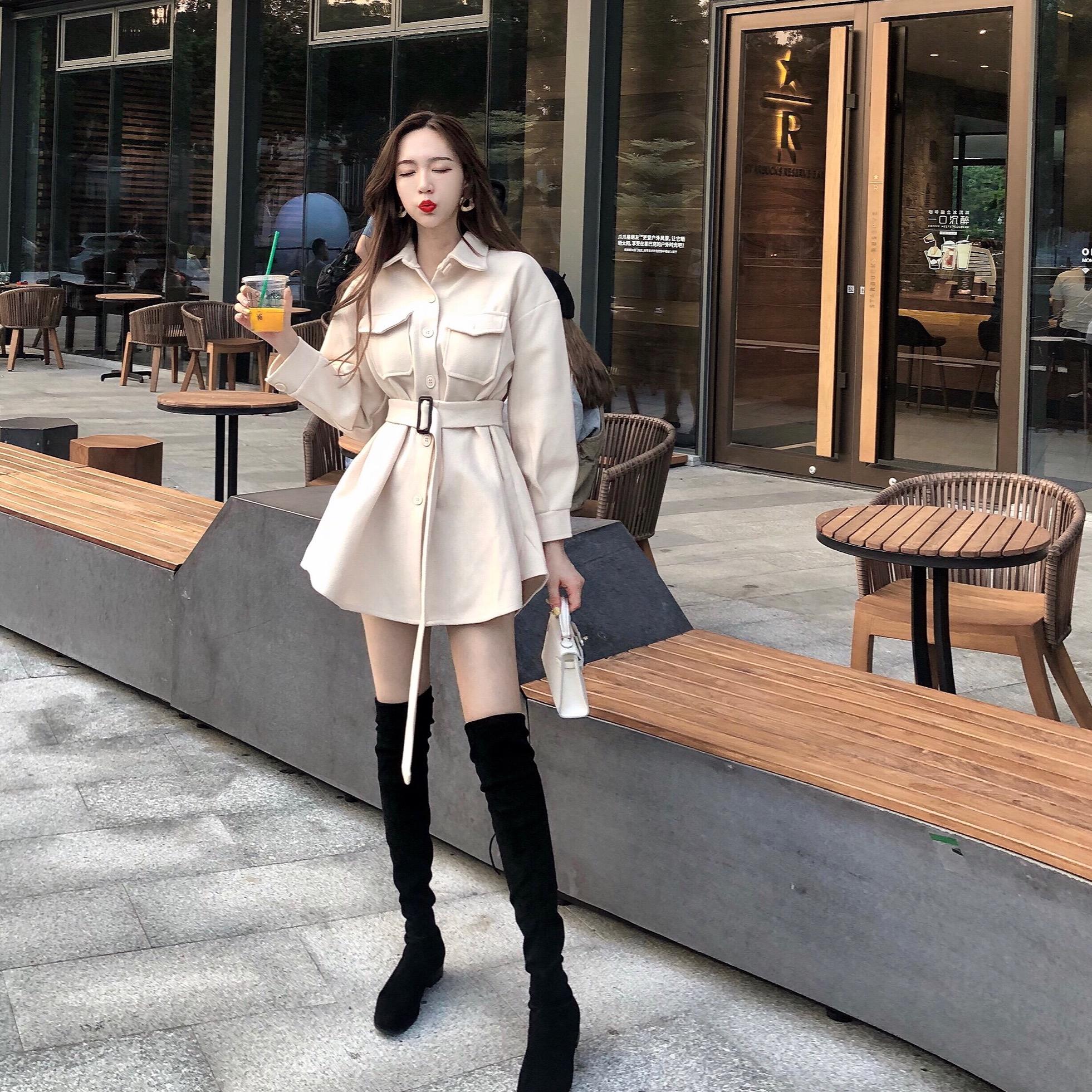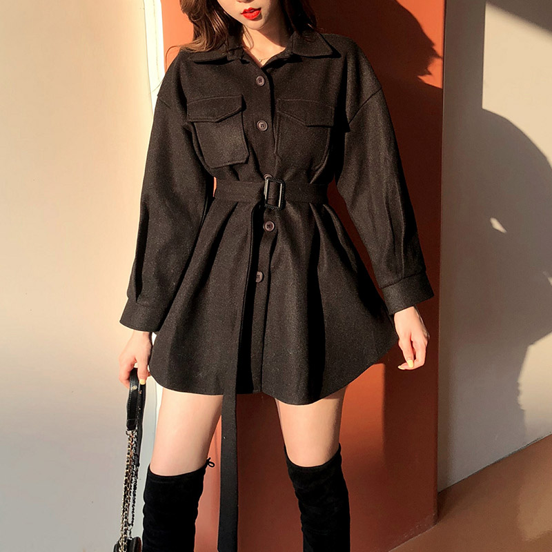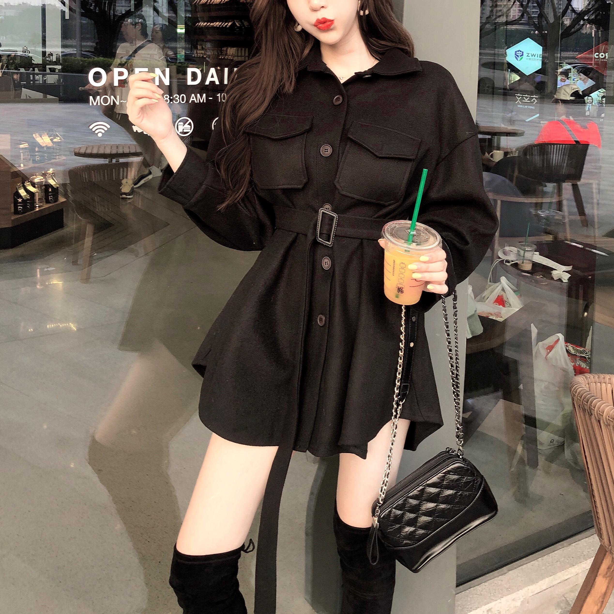 2018流行大衣韓版秋季新款復古洋氣收腰修身中長款毛呢外套女學生