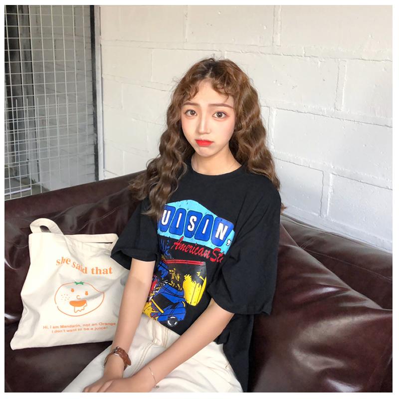 / 夏裝女裝韓版寬松原宿風字母卡通印花短袖T恤學生休閑顯瘦上衣潮