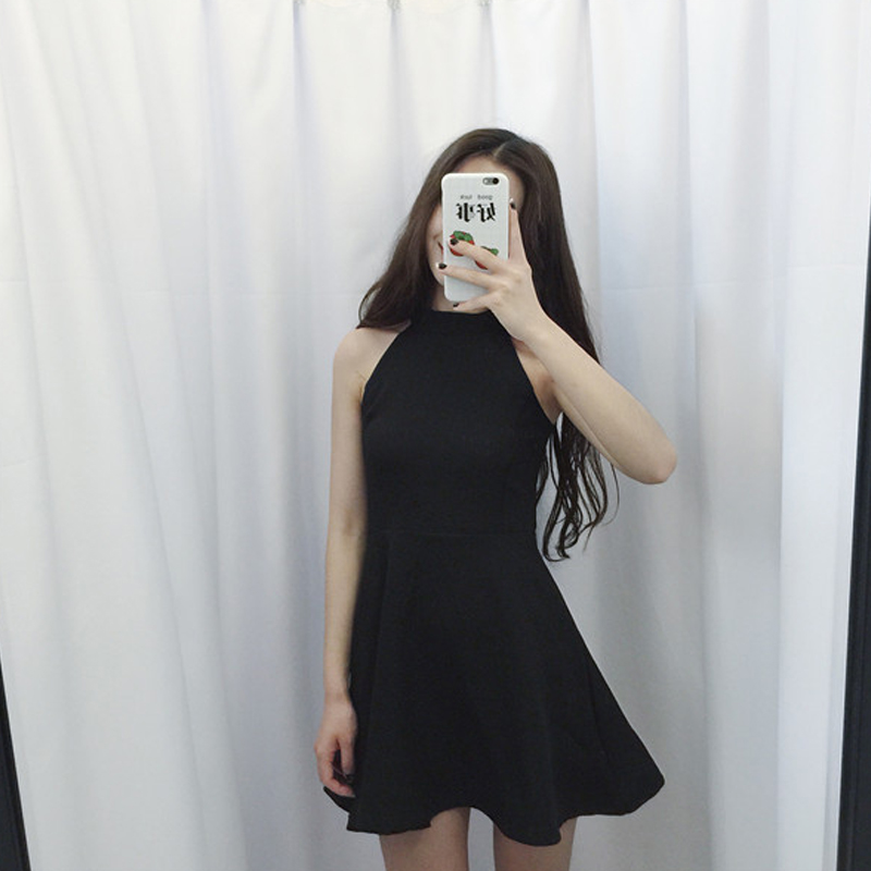 / 晚禮服掛脖削肩連衣裙無袖夏季韓版女裝氣質修身黑色顯瘦裙子學生