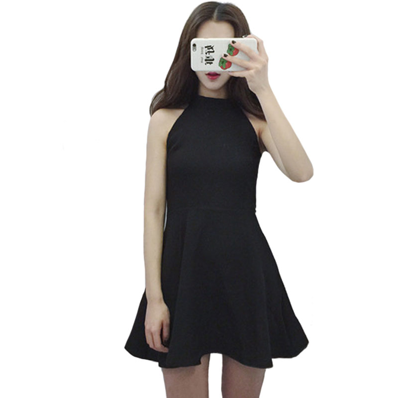 晚禮服掛脖削肩連衣裙無袖夏季韓版女裝氣質修身黑色顯瘦裙子學生