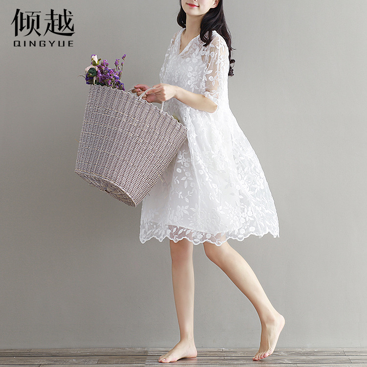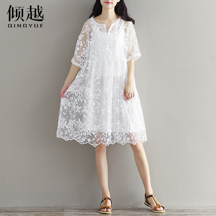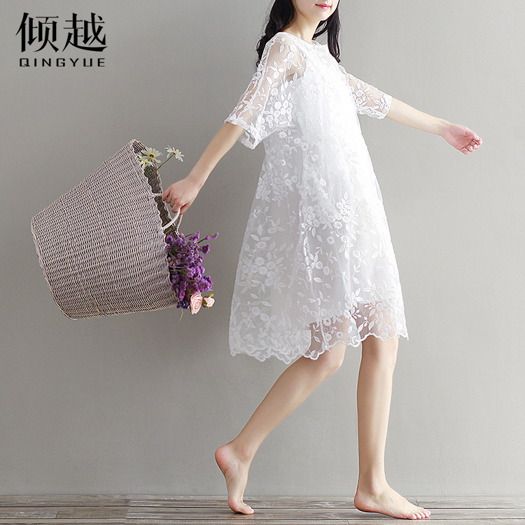 蕾絲連衣裙女夏2017新款氣質吊帶長裙修身顯瘦中長款韓版雪紡裙子