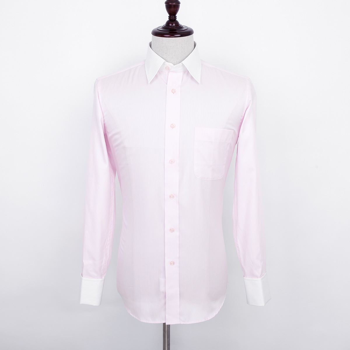 / 紫色法式袖扣襯衫男長袖天藍色條紋純棉免燙商務正裝襯衣秋季新品