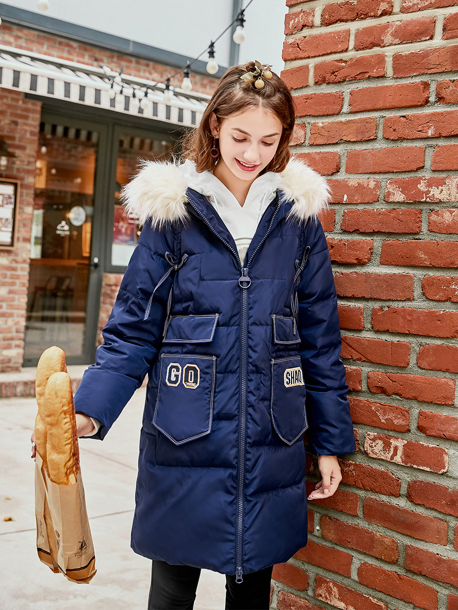 MG小象大毛領棉衣女中長款連帽休閑加厚學生棉服新款冬季棉襖外套