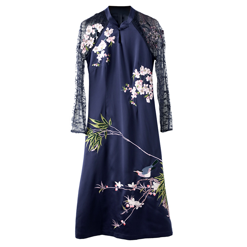 / 名媛氣質2018新款拼接刺繡改良版中國風復古繡花時尚旗袍連衣裙潮