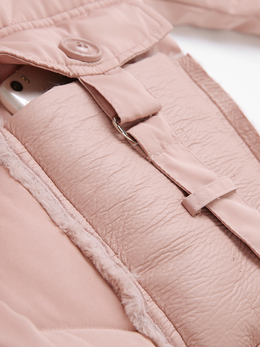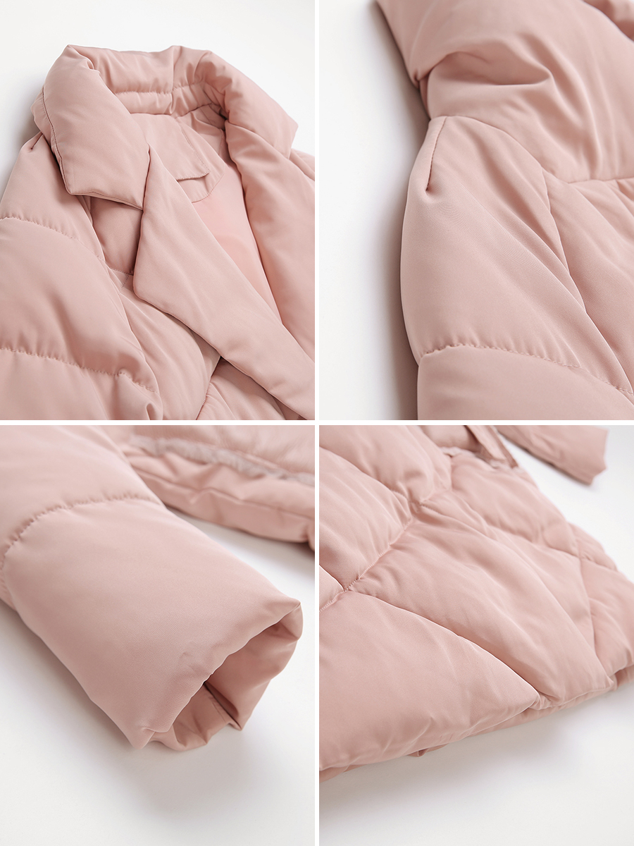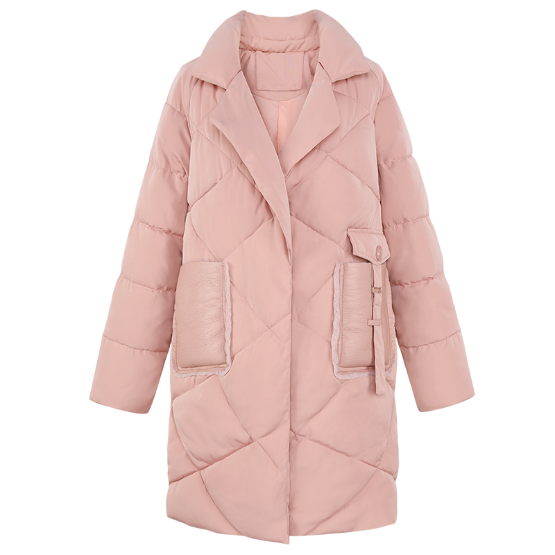 MG小象加厚棉服女冬裝2018新款韓版菱格面包服學生粉色中長款棉襖