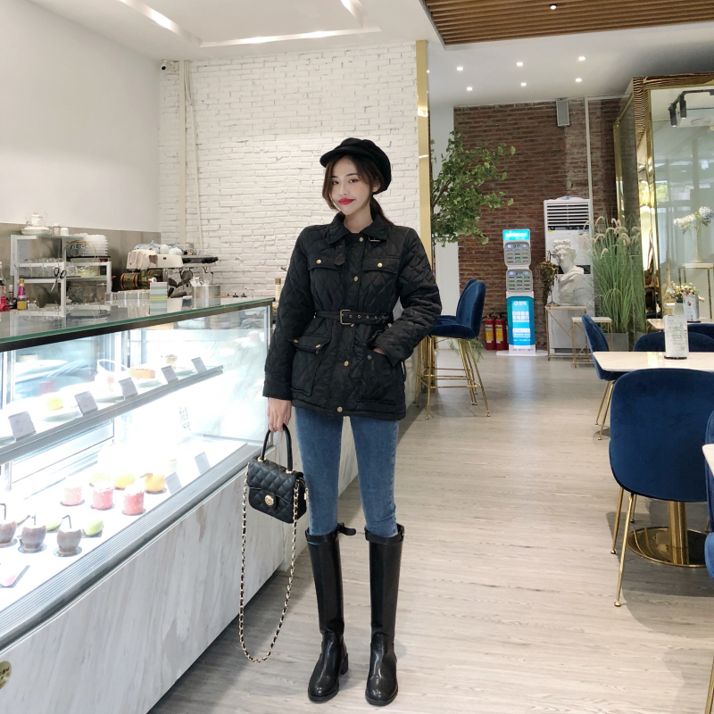 新款韓版chic復古百搭修身顯瘦收腰夾克加厚長袖開衫棉衣外套女