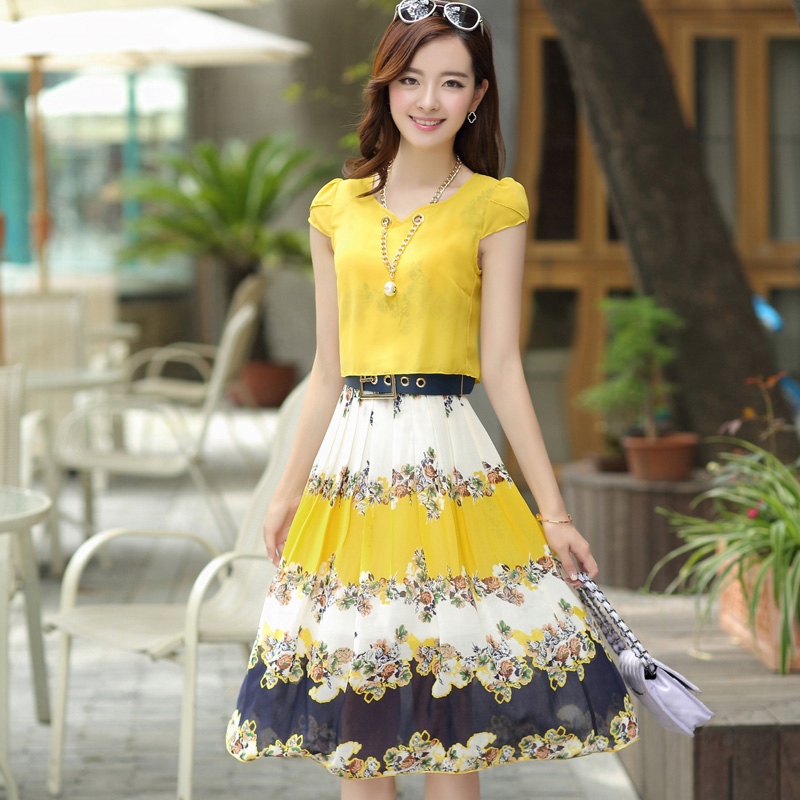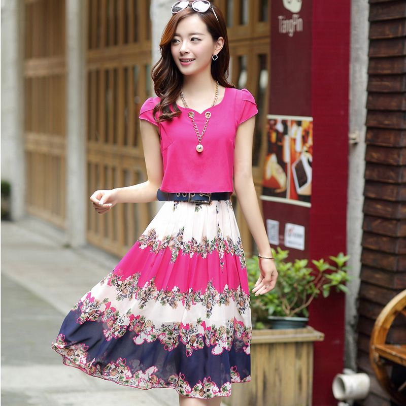 夏季新款女裝韓版氣質雪紡連衣裙中長款修身顯瘦大擺公主裙潮