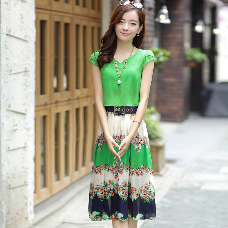 / 夏季新款女裝韓版氣質雪紡連衣裙中長款修身顯瘦大擺公主裙潮