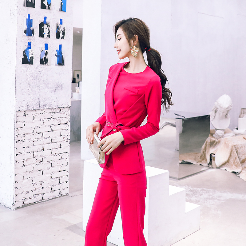 / 英倫風時尚女套裝早秋2018新款九分褲小西裝長袖收腰韓版兩件套