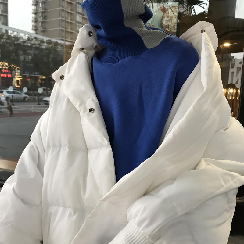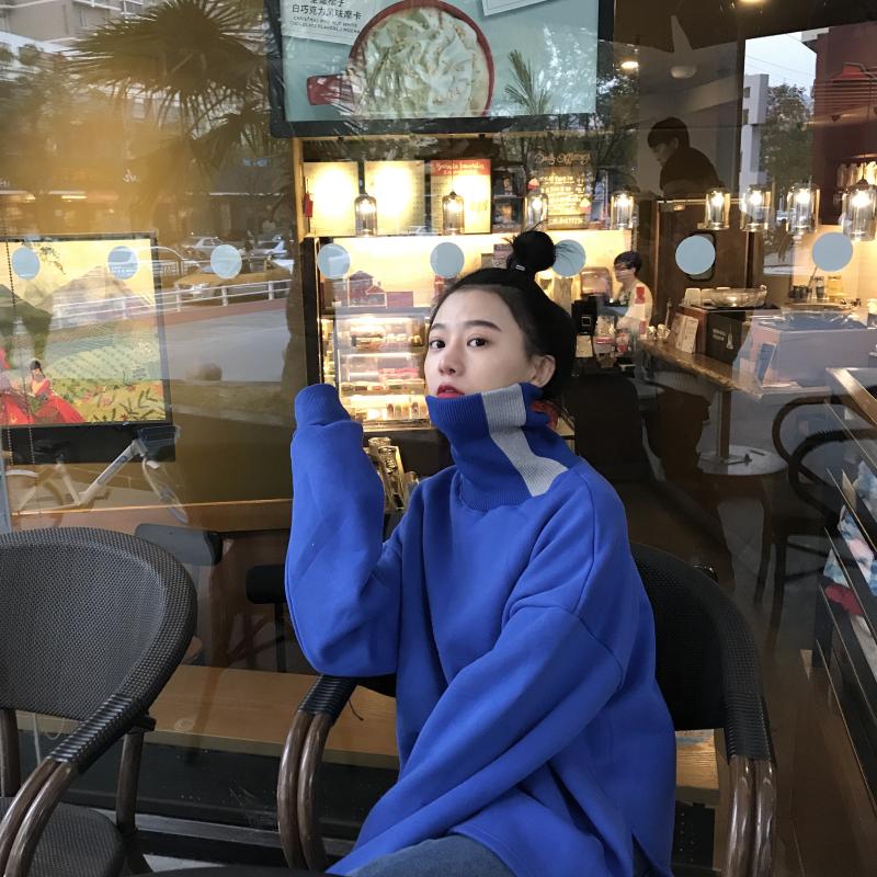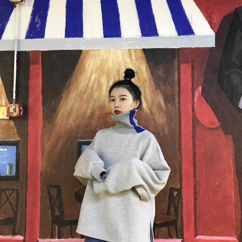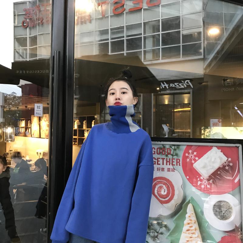 / 小清新時尚設計感新款韓版百搭寬松上衣女chic拼色高領加絨衛衣潮