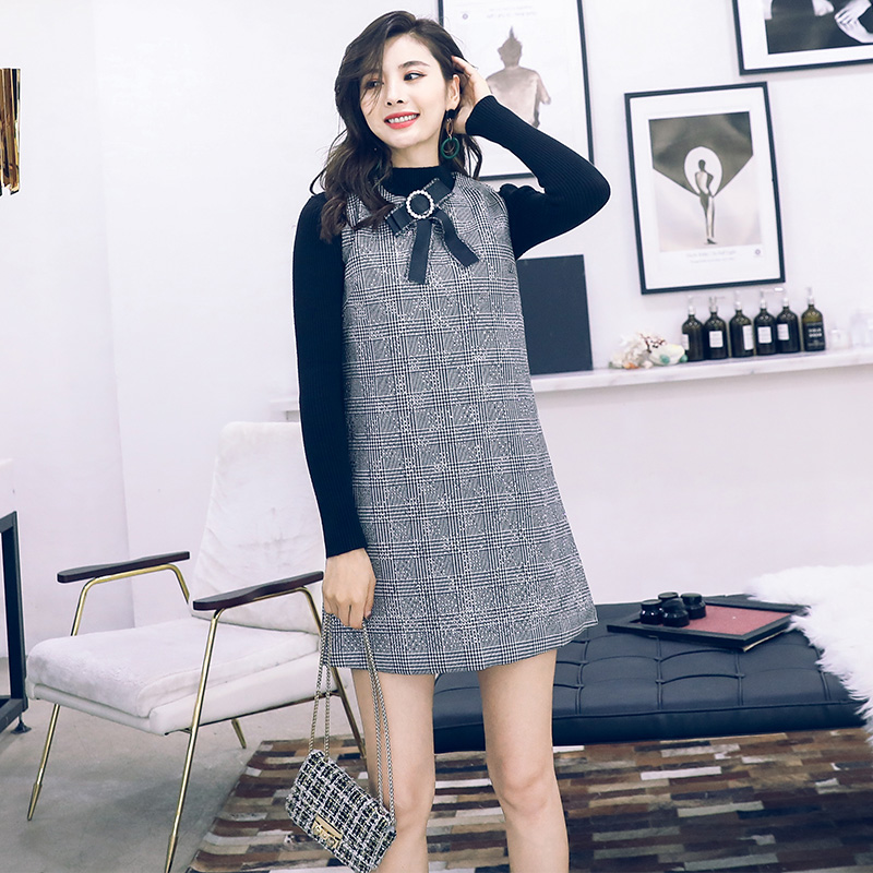 / 洋氣套裝秋冬兩件套針織衫打底連衣裙2018新款無袖毛衣馬甲背心裙