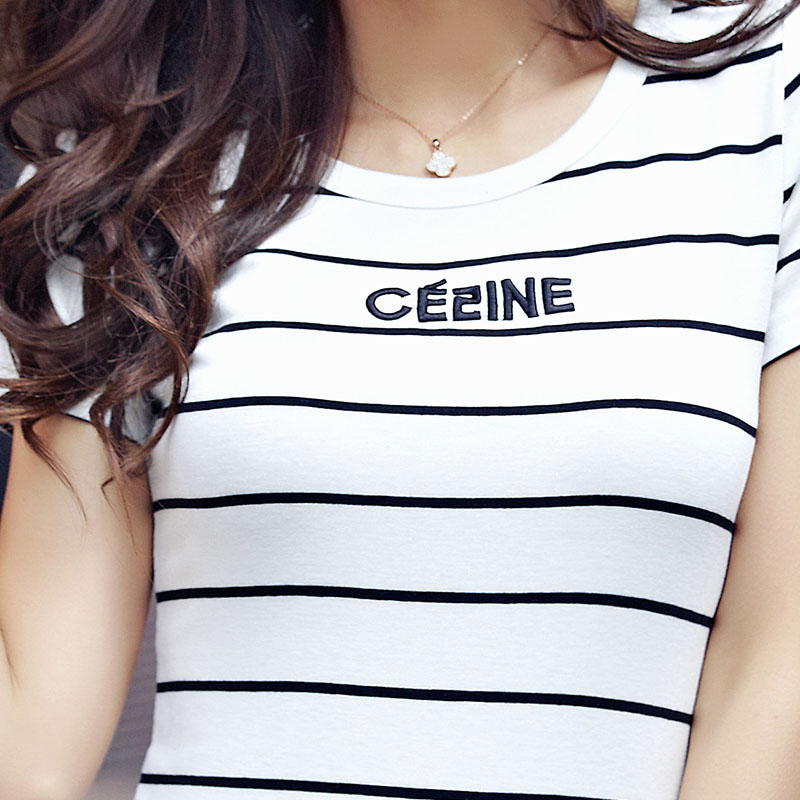 夏季女裝2017新款春短袖t恤女寬松白色條紋大碼上衣韓版純色體恤