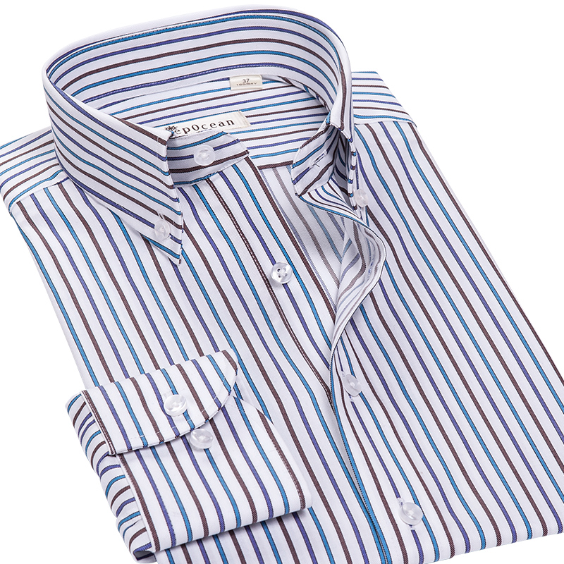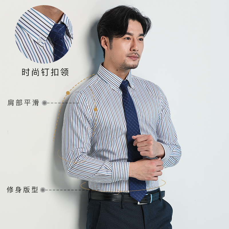 秋季條紋襯衫男長袖寸衫純棉免燙修身韓版潮流帥氣男士襯衣青年