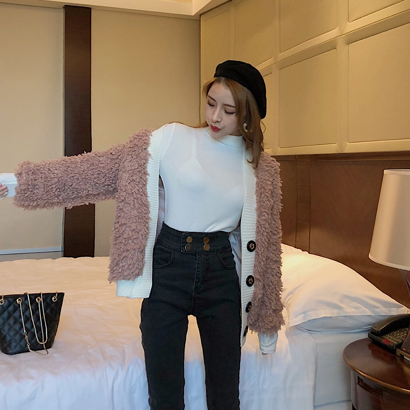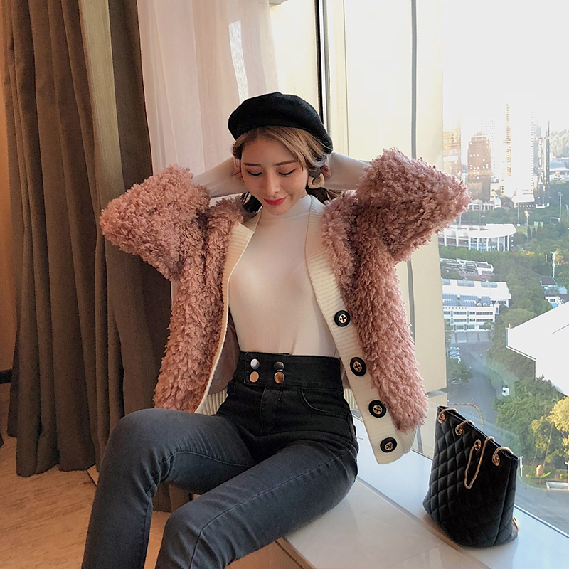 秋冬新款毛毛加絨單排扣保暖外套時尚chic長袖寬松顯瘦女裝開衫潮