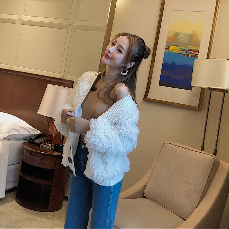 / 秋冬新款毛毛加絨單排扣保暖外套時尚chic長袖寬松顯瘦女裝開衫潮