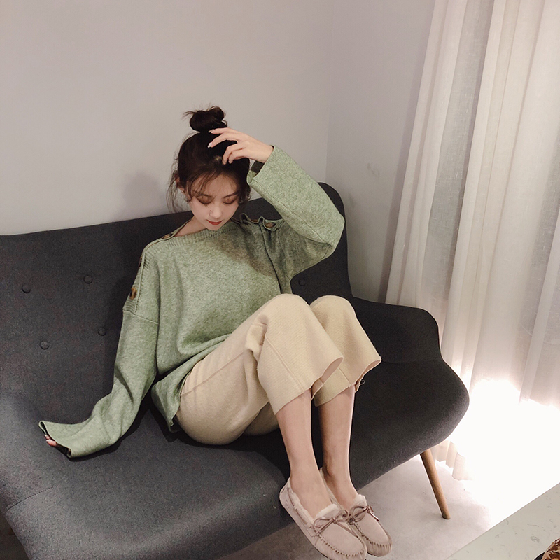 / 新款一字領套頭慵懶風復古chic長袖秋冬百搭毛衣女寬松針織衫上衣