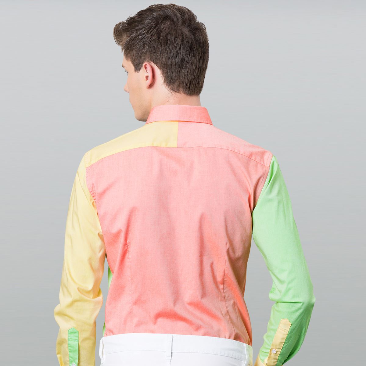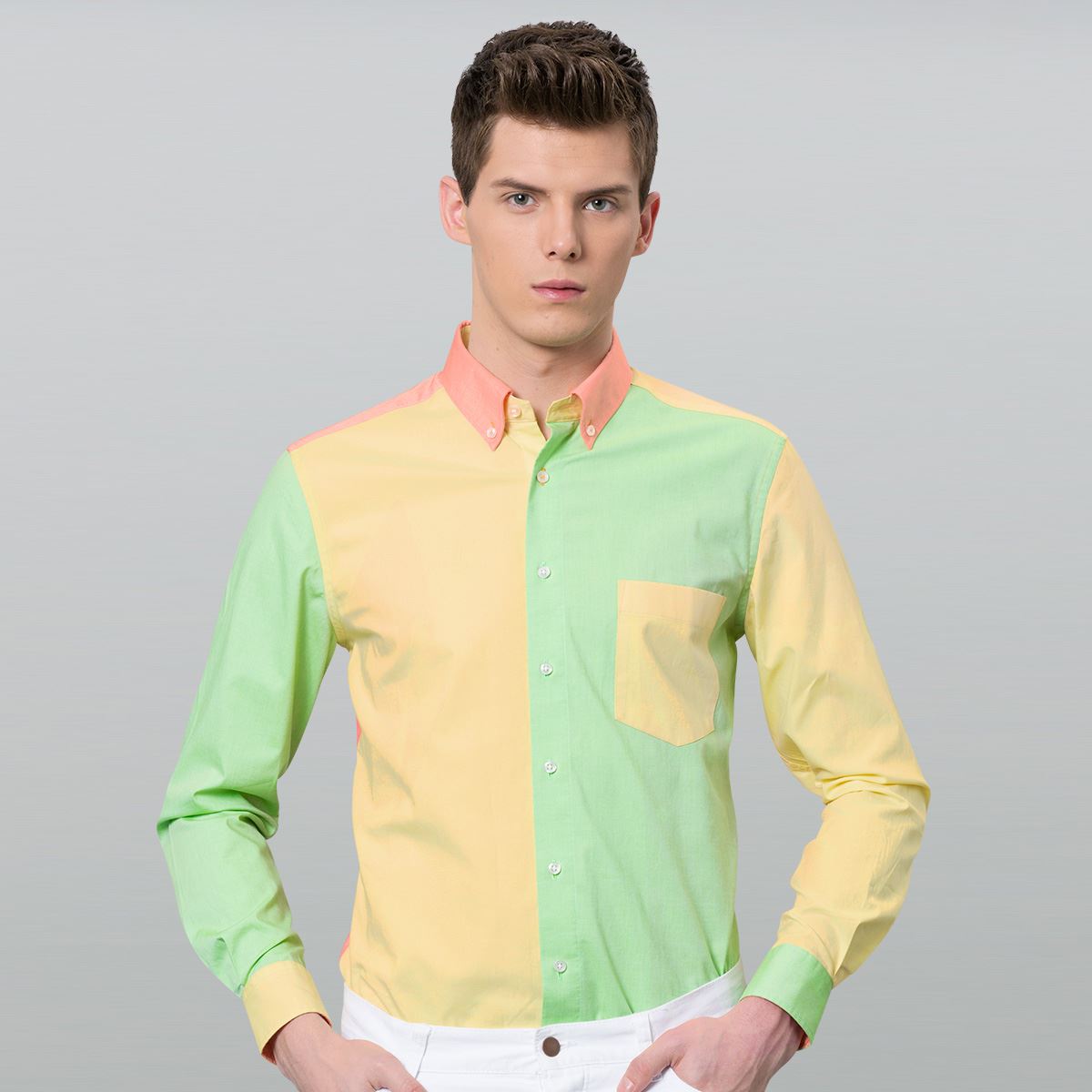 DEEPOCEAN秋季三彩拼色襯衫長袖韓版修身型襯衣純棉免燙拼接男裝