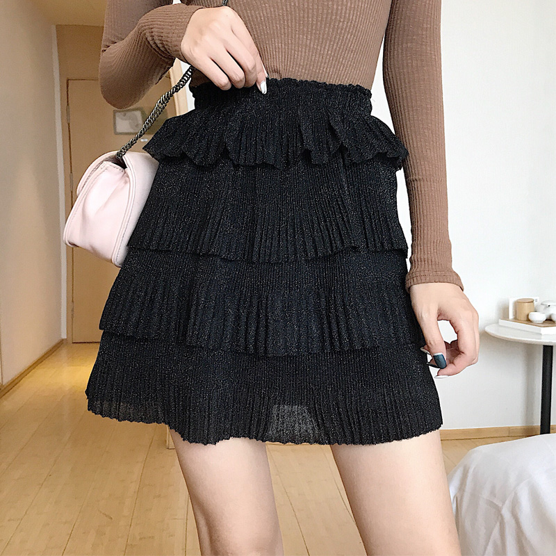 / 裙子女秋季新款韓版百搭高腰chic時尚閃閃亮絲半身裙蛋糕裙短裙潮