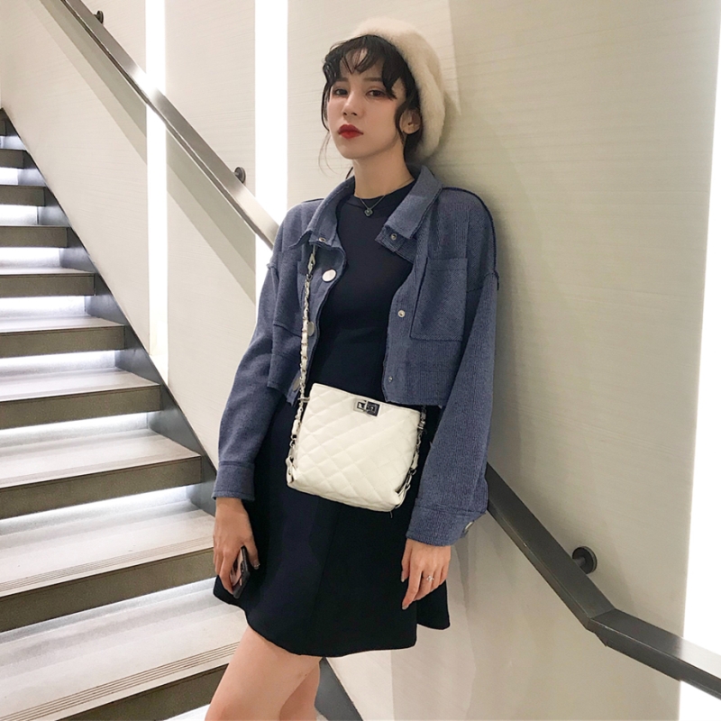 慵懶風秋裝女2018新款復古夾克牛仔外套女春秋+純色V領吊帶連衣裙