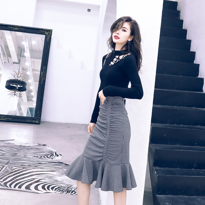名媛氣質秋冬裝半身裙女2018新款毛衣配魚尾裙子兩件套裝秋冬季