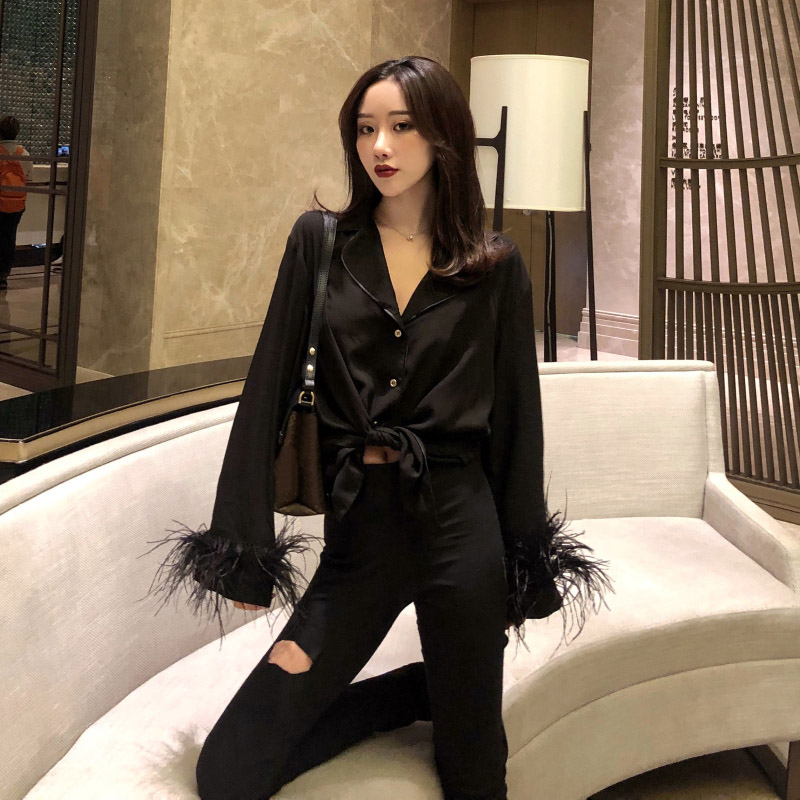 西裝領長袖chic早秋襯衫女設計感時尚寬松顯瘦新款韓版大氣上衣潮