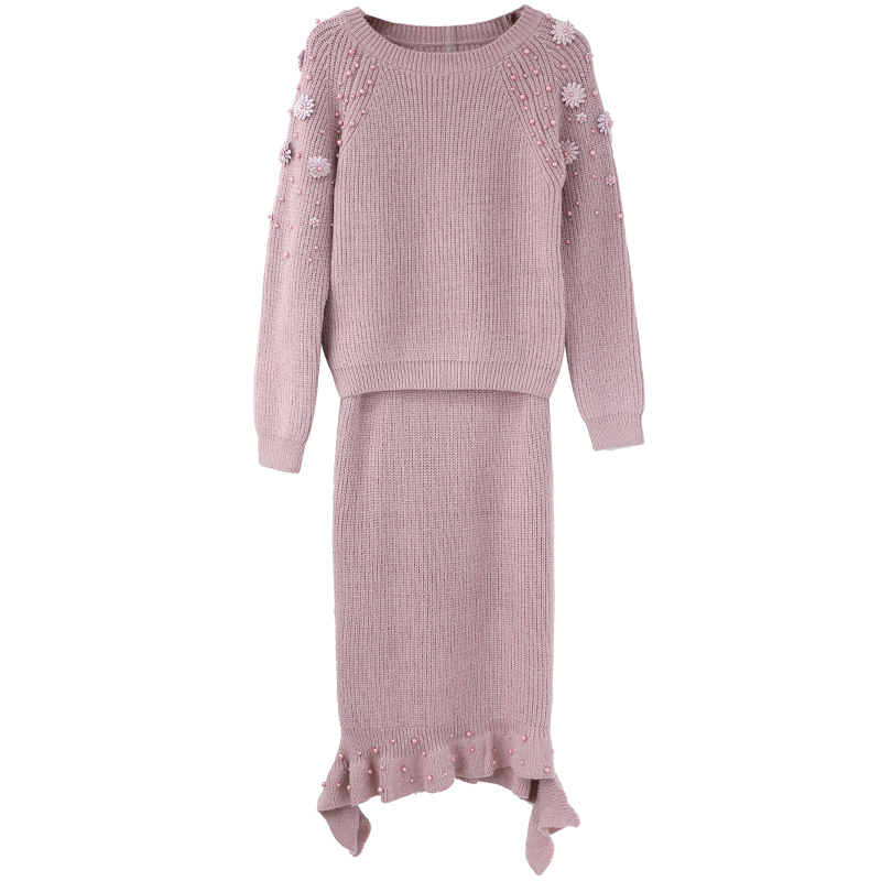 / 名媛氣質秋冬套頭釘珠毛衣針織兩件套高腰顯瘦包臀chic半身裙套裝