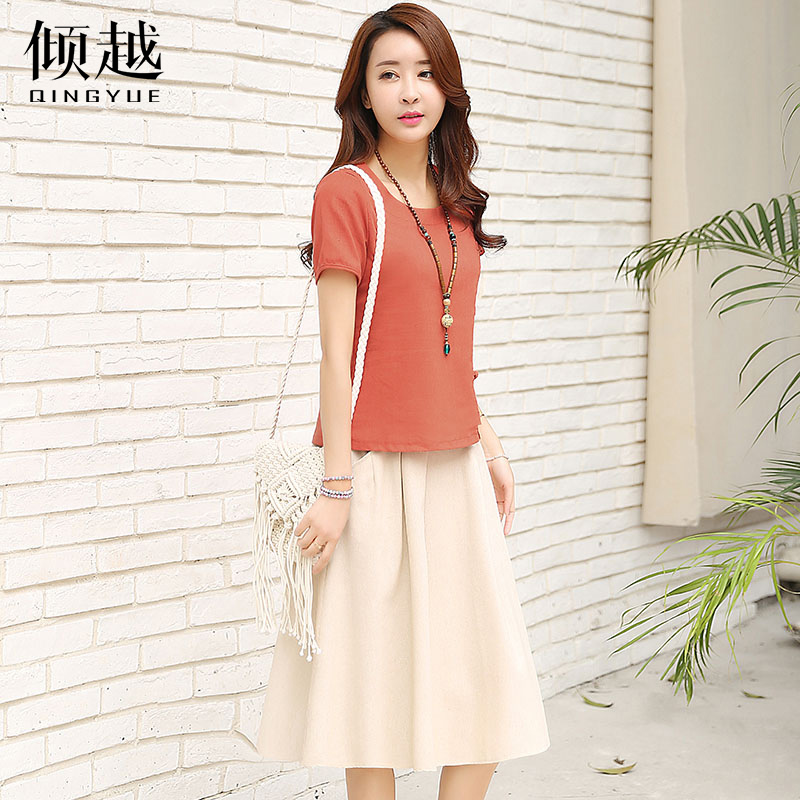傾越2017夏裝韓版新款套裝女顯瘦時尚套裝裙子中長款氣質兩件套潮