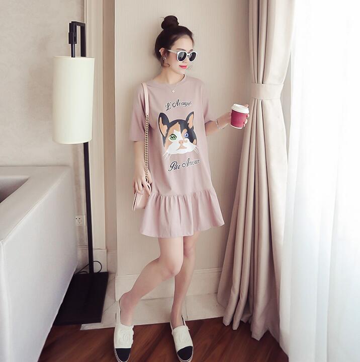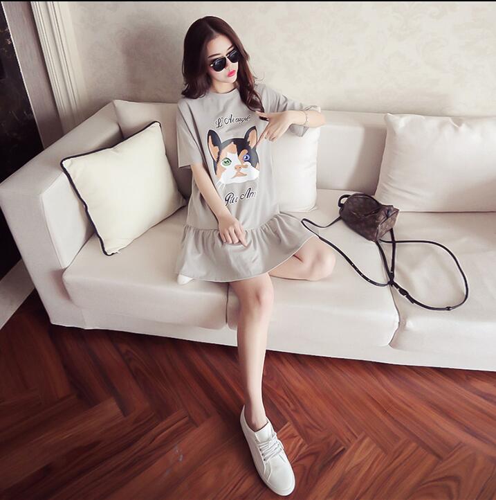 / 夏季連衣裙女大碼2017新款女裝潮中長款休閑寬松顯瘦短袖T恤裙子