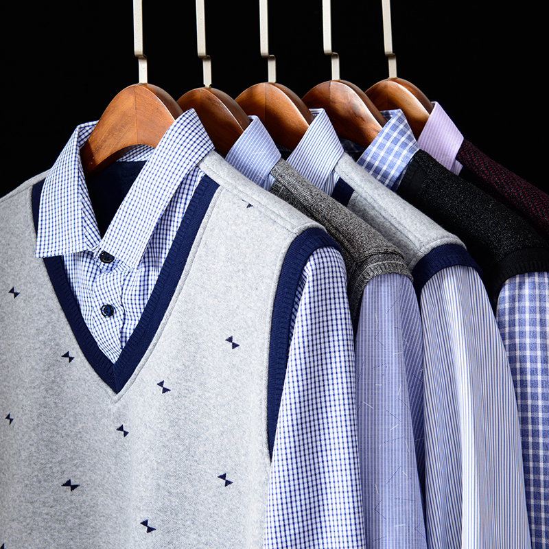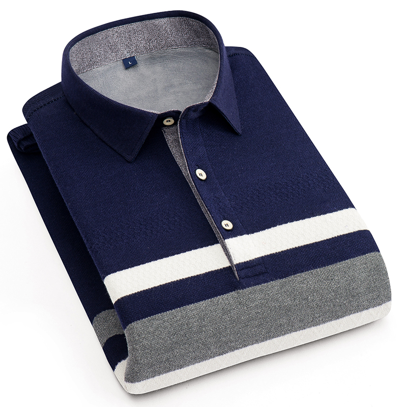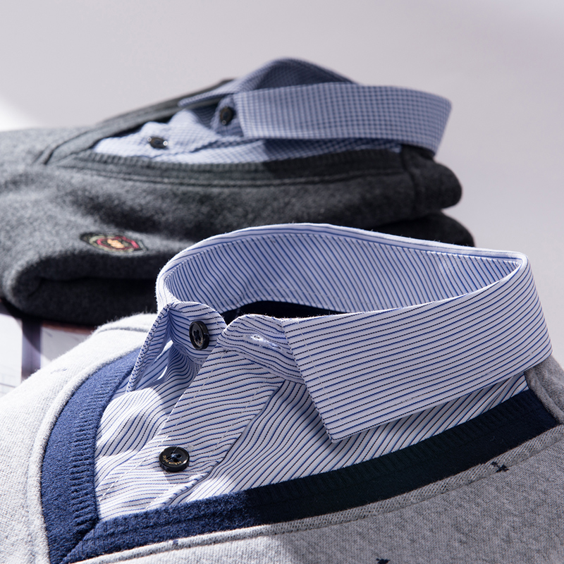 / 冬季男式保暖襯衫假兩件加絨加厚 彈力保暖上衣套頭 休閑保暖襯衣