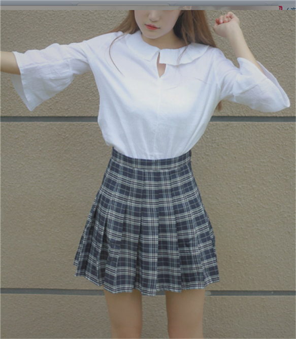/ 韓版秋裝女裝小清新格子半身裙高腰百褶裙顯瘦夏季學生A字裙短裙