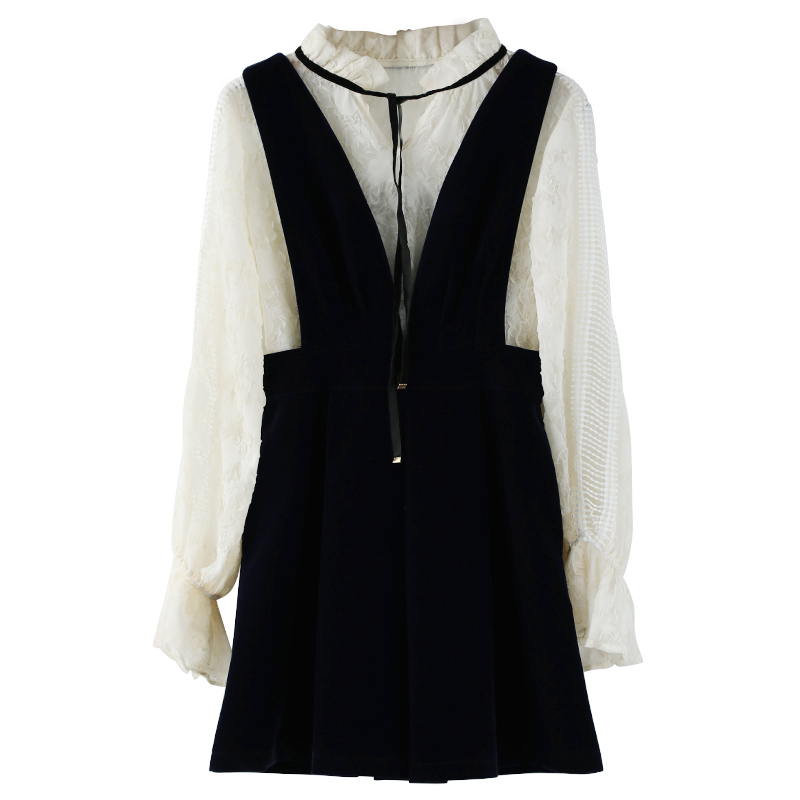 / 絲絨連衣裙女秋2018新款氣質優雅背心裙小個子蕾絲上衣兩件套裝裙