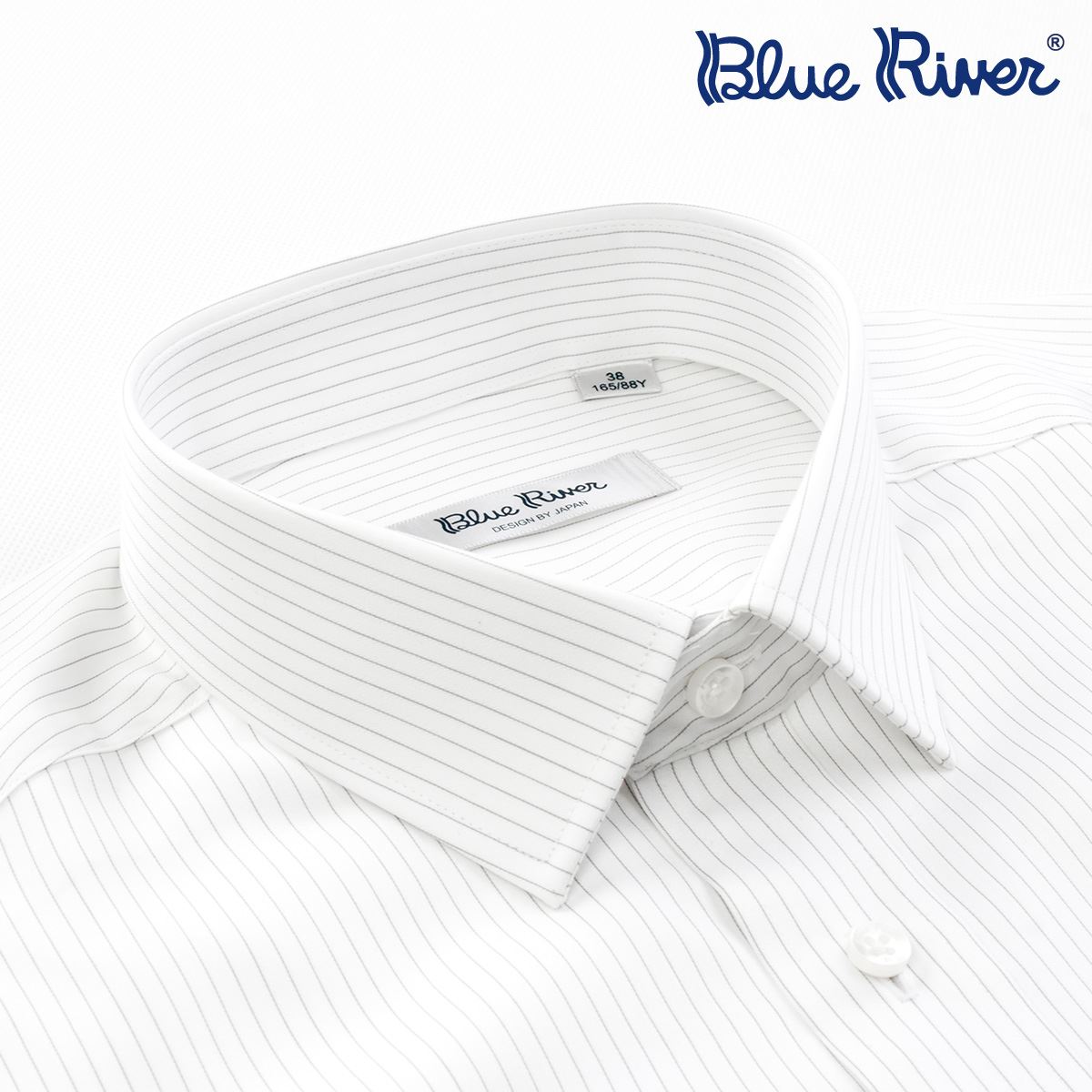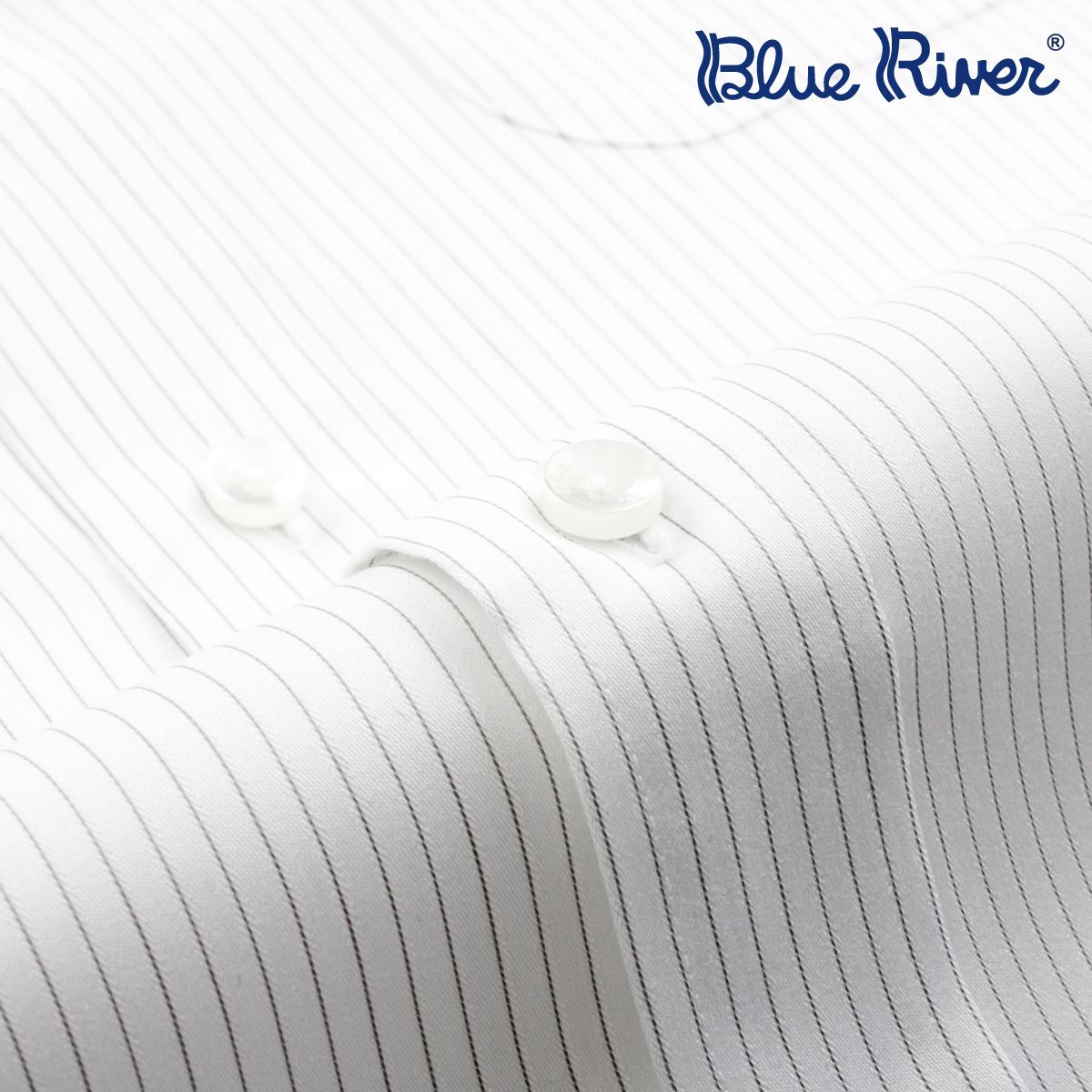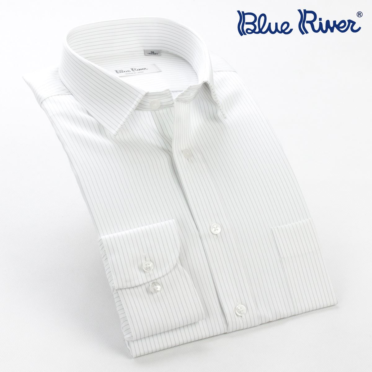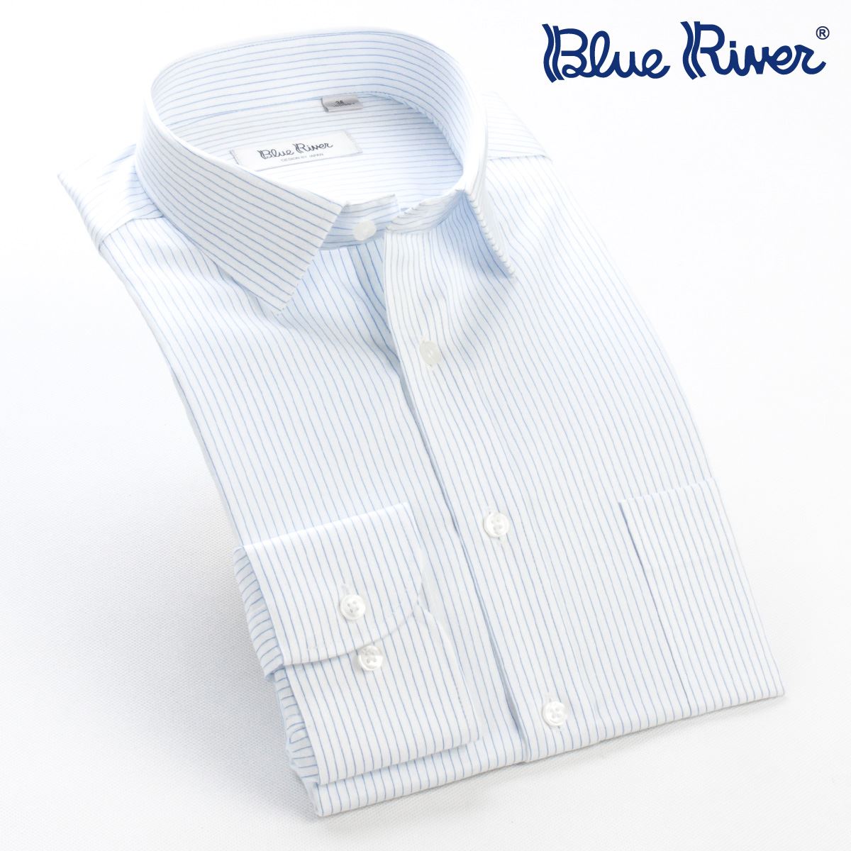 BLUE RIVER/藍河條紋襯衫男長袖白藍灰色商務休閑襯衣英倫紳士