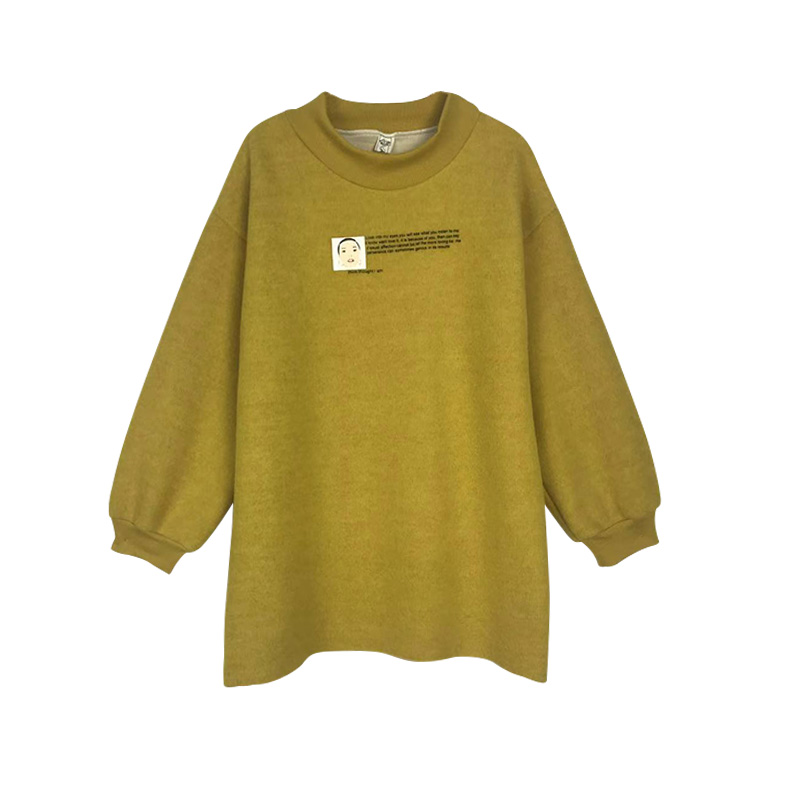 秋冬女裝寬松顯瘦字母印花半高領中長款百搭衛衣針織裙配個性挎包