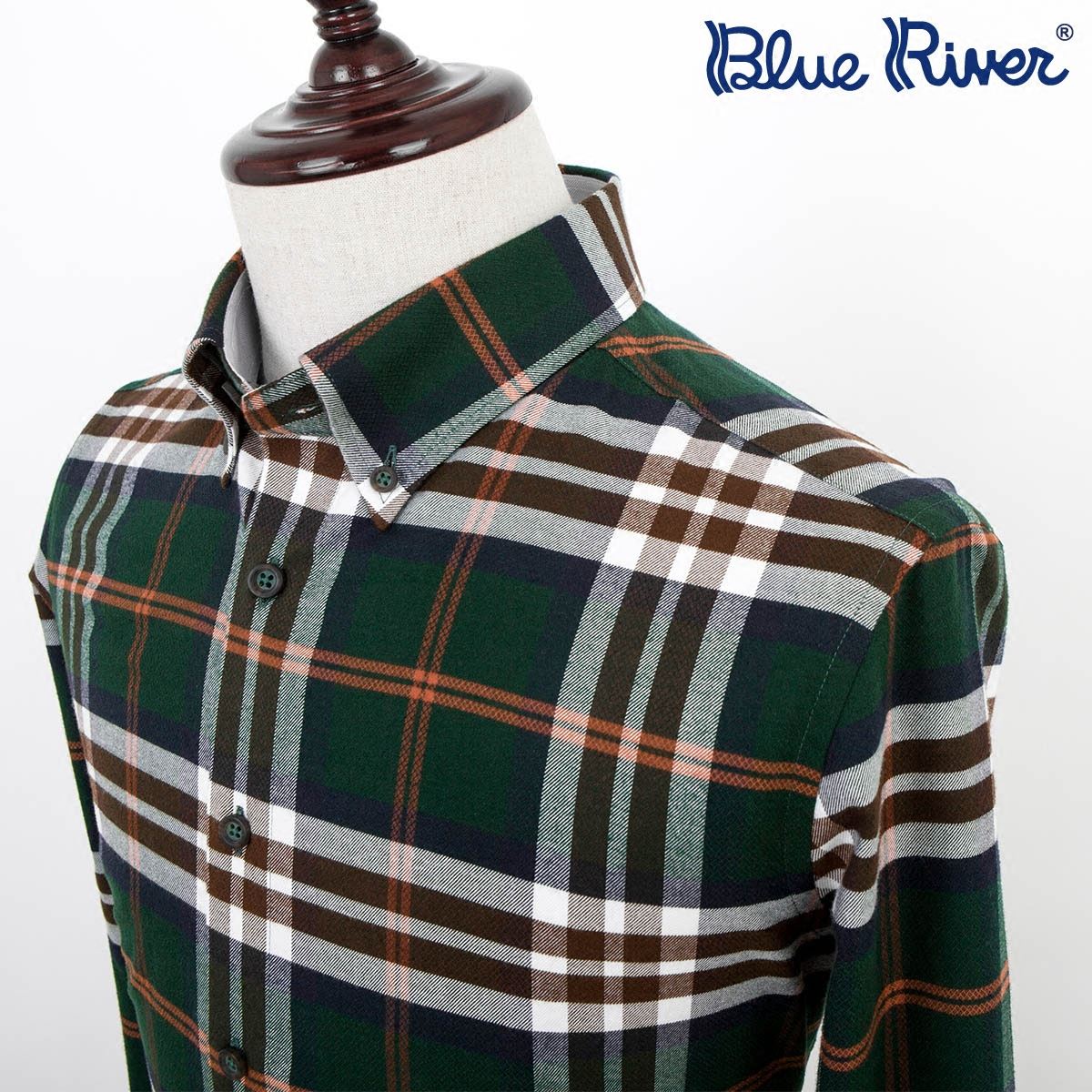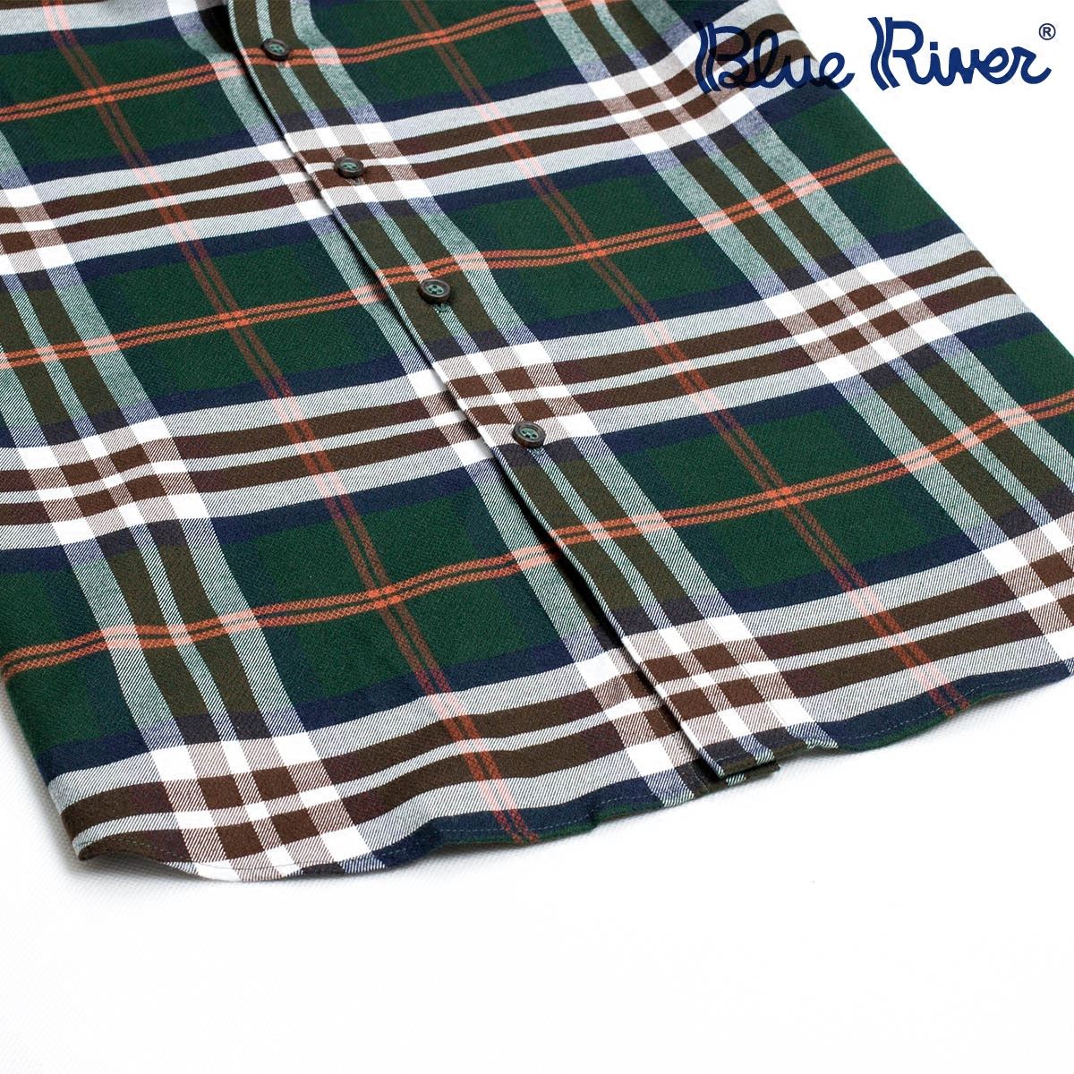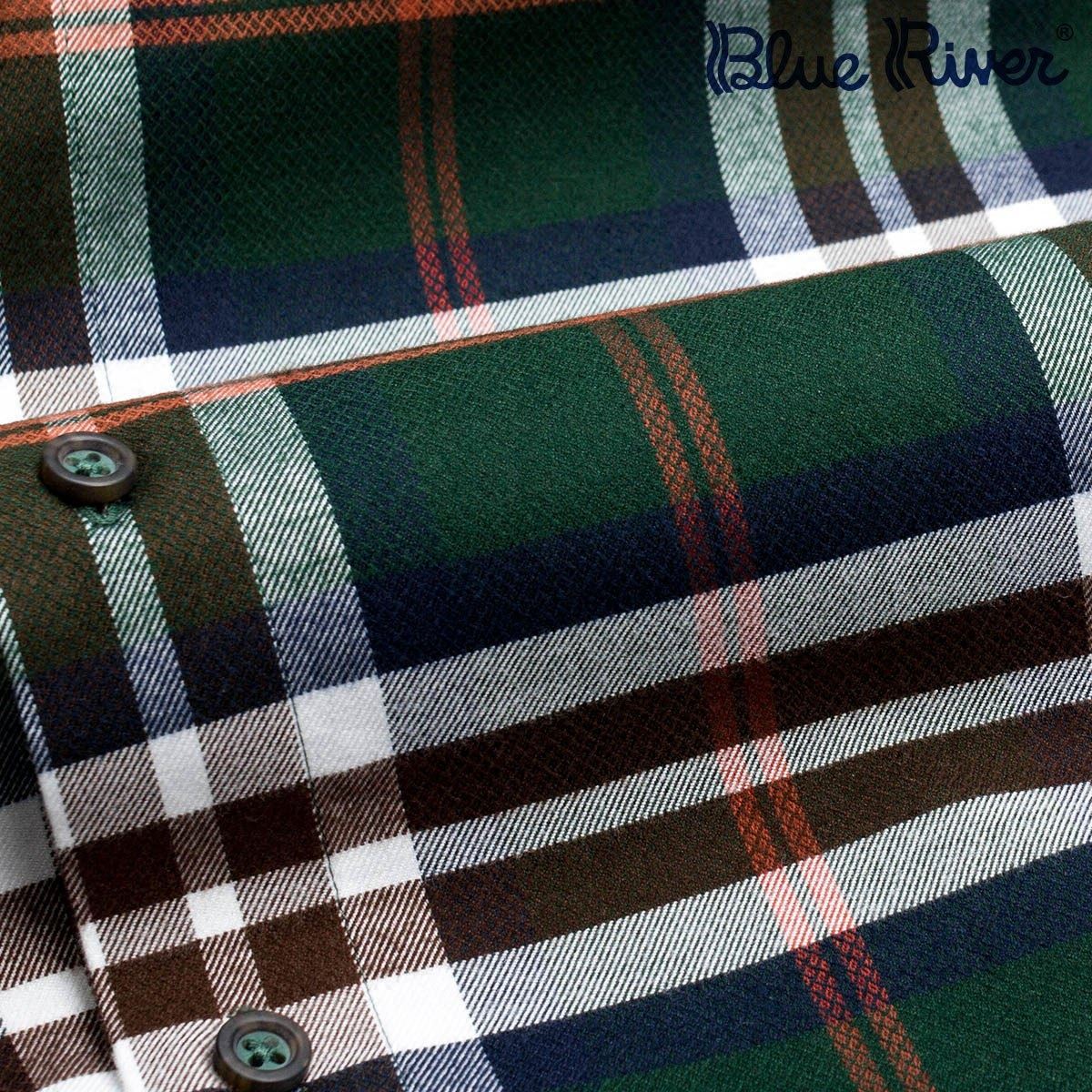 藍河男士彩色格紋襯衫男長袖修身2018新品格子秋棉質保暖襯衣