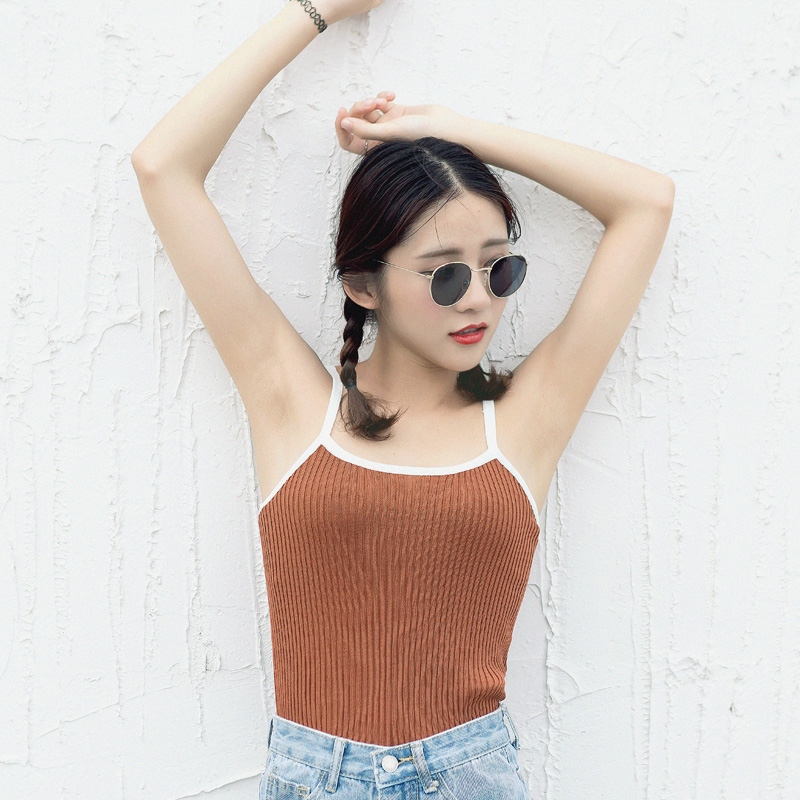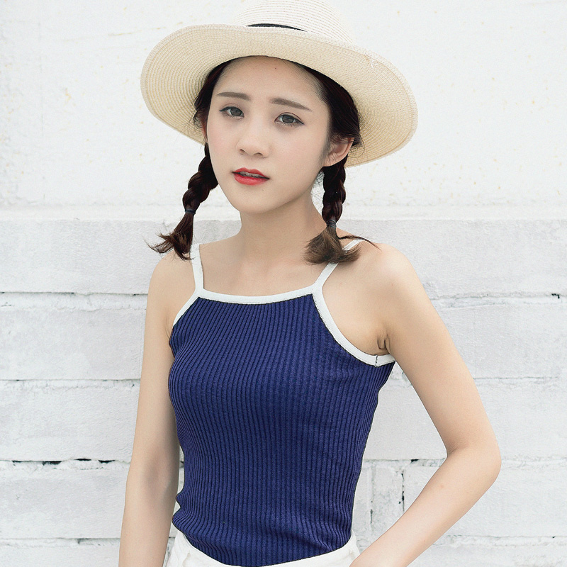 / 夏裝新款女裝吊帶背心女拼色百搭修身顯瘦無袖學生針織上衣潮