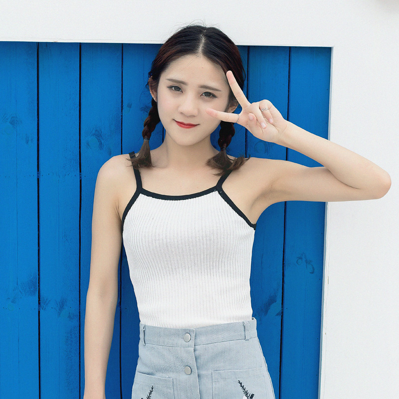 2017夏裝新款韓版女裝無袖針織吊帶背心短款修身綁帶打底衫上衣潮