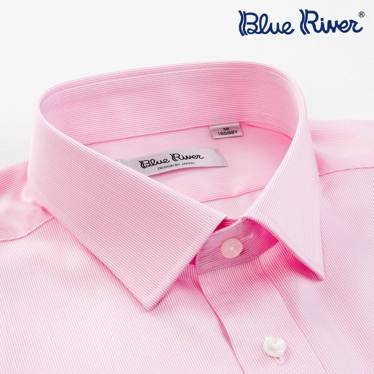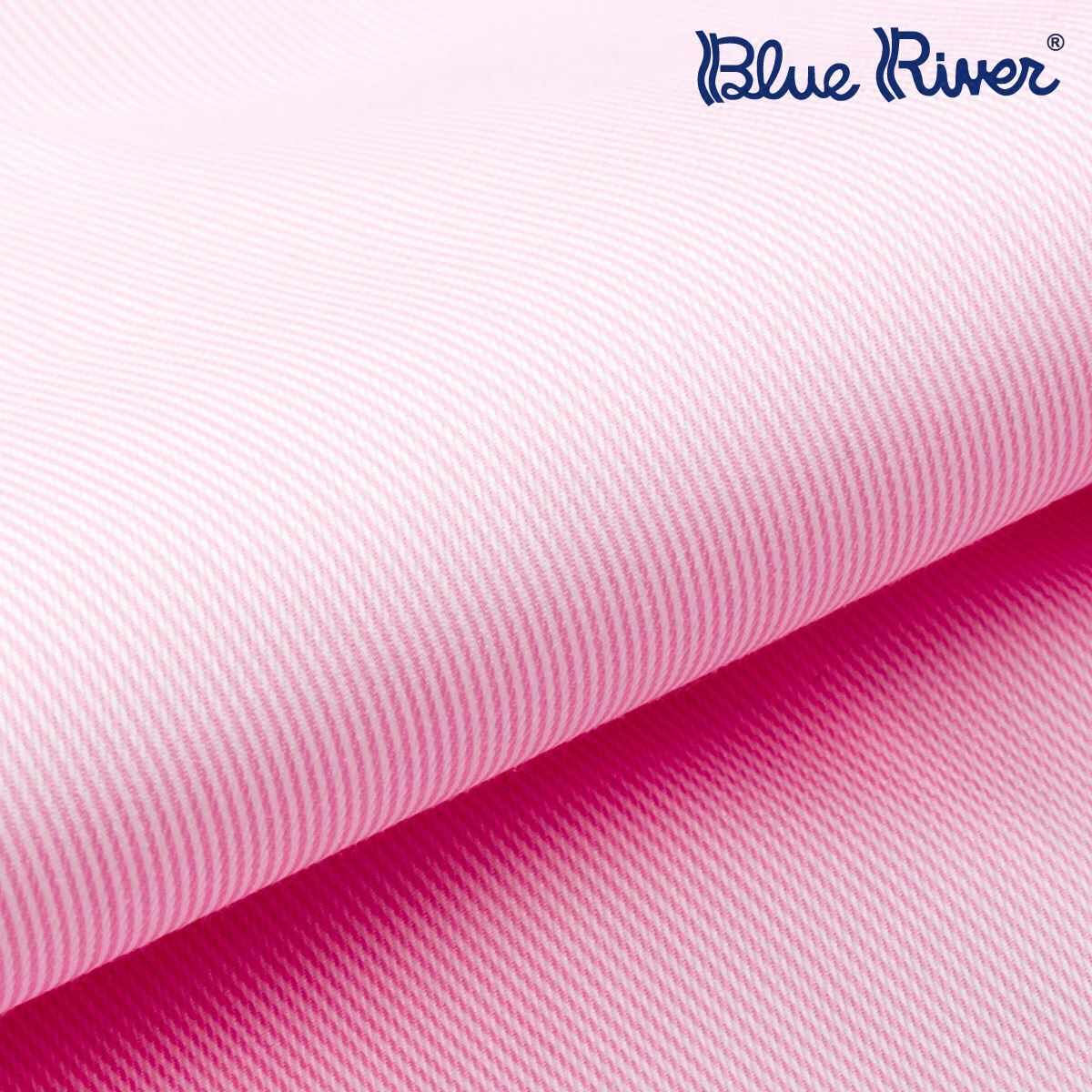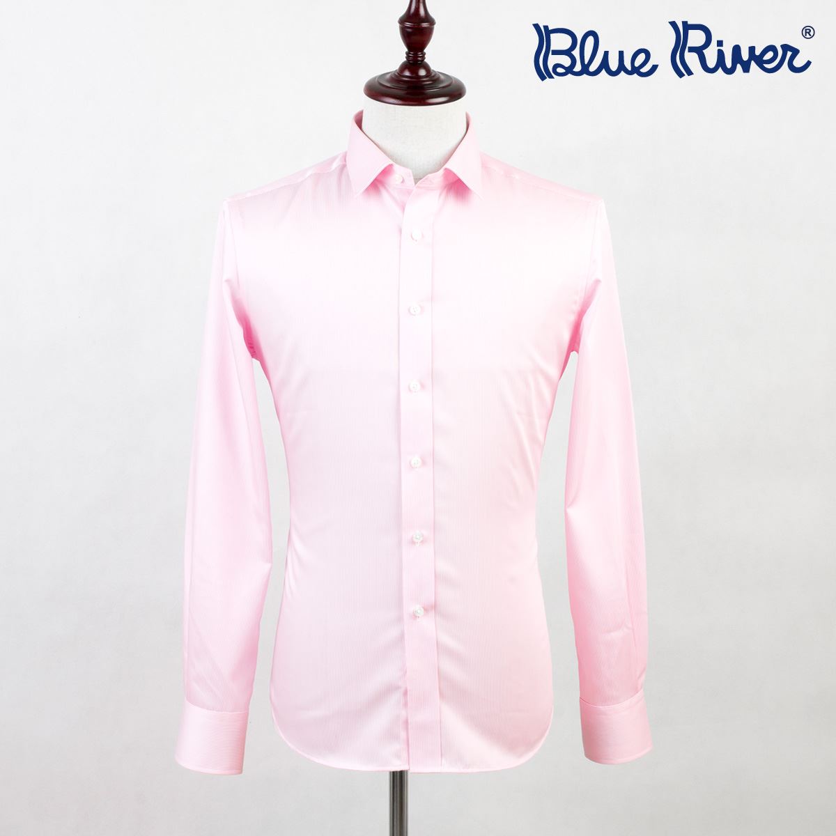 / BLUE RIVER/藍河粉色襯衫男長袖商務休閑英倫條紋襯衣藍河新款